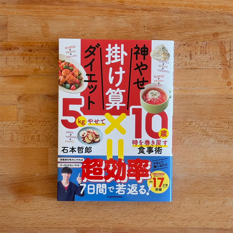 シリーズ累計17万部の神やせダイエットの最新作『神やせ掛け算ダイエット 5kgやせて10歳時を巻き戻す食事術』石本哲郎(著)KADOKAWA 撮影とスタイリングを担当しました。 栄養素を掛け算することで、この本の通りに7日間実践すれば、食べるだけでやせる!若返る!というダイエットの実践的な本です。ゆるプランとガチプランがあるので、取り組みやすくつくられています。